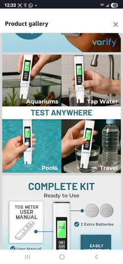 Varify Digital TDS Meter - Accurate Water Tester for TDS, EC & Temp - Fast Results for Drinking Water, Aquariums, RO Systems, Hydroponics, Pools$8South Gate, CA