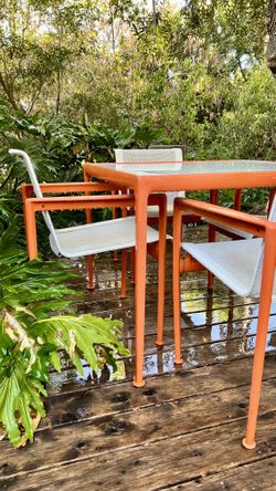Richard Schultz 1966 Dining Set - 38” Table & 4 Armchairs - Orange / White $4,800La Mesa, CA