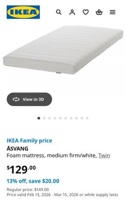 Foam mattress, medium firm/white, Twin For $50- 2 For $80$50Huntersville, NC