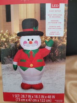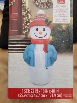 New!! 4ft (4 Ft) Pre-lit (Prelit) Christmas Inflatable Ornament - Snowman With Blue Puffer Jacket$20Allen, TX