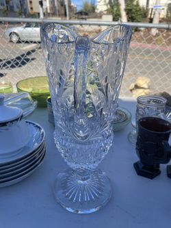 Crystal Glass Footed Pedestal Pitcher Frosted Roses 12.5" American Brilliant $40San Diego, CA
