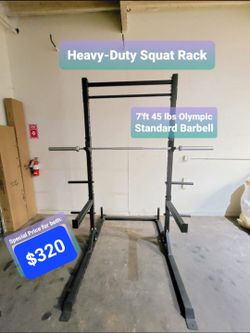 Heavy-Duty Squat Rack, with 7'ft 45 lbs Olympic Standard Barbell - Brand New!