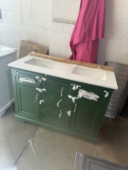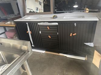 48 in. Dark Brown Wood Double Sink Freestanding Bathroom Vanity with White Marble Top(Assembled)$450Anaheim, CA