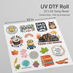 UV DTF gang sheet roll customize, full color, same day pick up. Super affordable pricing structure$7Anaheim, CA