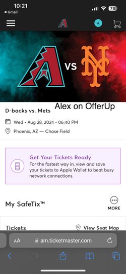 Diamondbacks vs Mets 08/28$25Gilbert, AZ