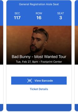 Bad Bunny Tickets$750Gilbert, AZ