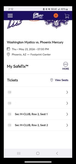 Phoenix Mercury vs Washington Mystics 5/23$300Gilbert, AZ