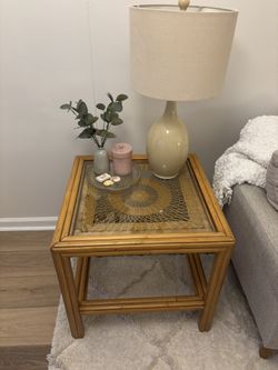 Large Bamboo Side Table with Glass Top & Woven Rattan$125Charleston, SC