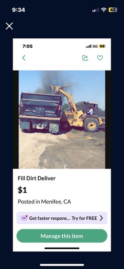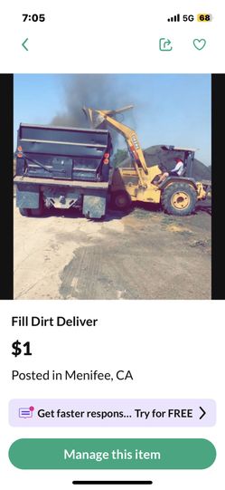 Fill Dirt Grading $$$ Deliver Nuevo Area$100Perris, CA
