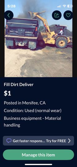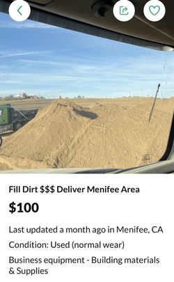 Fill Dirt Tierra Limpia Clean Dirt Available $50Homeland, CA