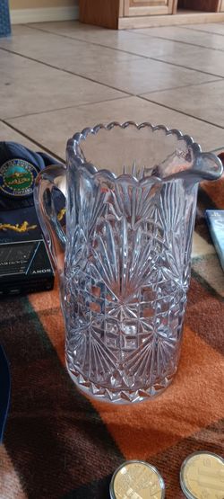 Vintage Lead Pressed Glass Water Beverage Pitcher Design 9" TallI$18Belleair, FL