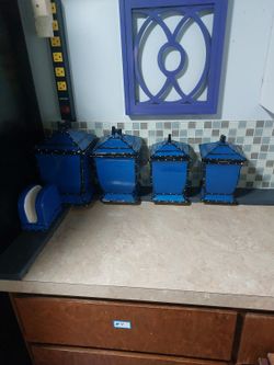 Blue Ceramic 5Pc Canister Set Good Condition $35Centralia, WA