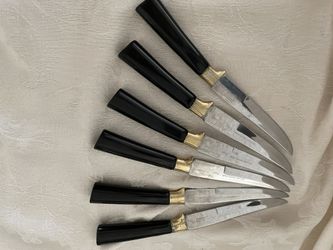 Vintage Set Of 6 Peeredge Steak Knives Made In Sheffield, England, 24 K Gold Plated Accents And Blacklight Handles $35Burbank, CA