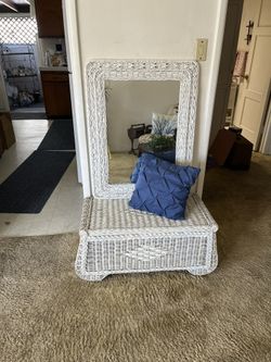 Vintage White Wicker Framed Mirror $175Whittier, CA