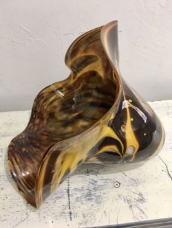 Retro Blue Sage Studios Hand Blown Glass Ruffled Bowl/Vase $100Oklahoma City, OK