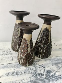 Ceramic Leaf Embossed Vases & Candle Holder (Set Of 3)$25Oklahoma City, OK