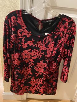 New With Tag Sami & Jo Women’s Top Black With Red Flocking 3/4 Length Sleeves Size Medium $10Issaquah, WA