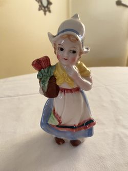 Vintage Dutch Girl Ceramic Figurine Holding Tulips Hand Painted 6” Tall $18Issaquah, WA