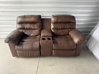 Brown Leather Reclining Loveseat with Center Console & Cup Holders$150Thornton, CO