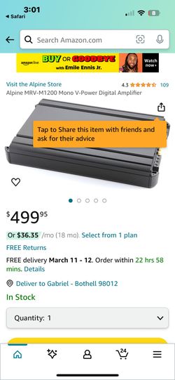 Alpine MRV-1200w Rms Amp$150Bothell, WA