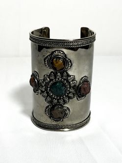Chunky Silver Plated Cuff With Stones, Fashion Boho Unique Artisan Made In India With Jewelry Bag Included , 8 Available $ 12 Each$12Quartz Hill, CA