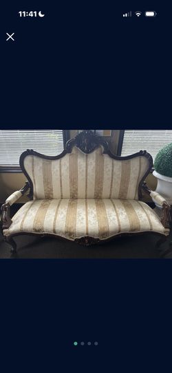 Antique Wood & Silk Sofa, 2 Club Chairs , 6 Chairs $500Paramus, NJ