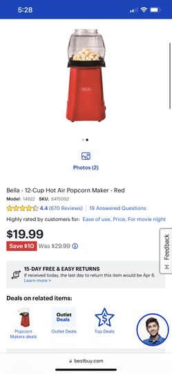 Bella Hot Air Popcorn Maker$19Phoenix, AZ