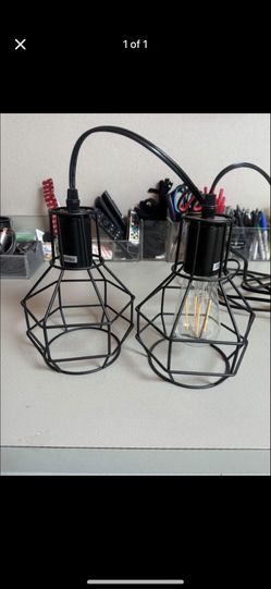 Lights - Industrial Wood Pendant Light Black Wire Cage$70Seattle, WA