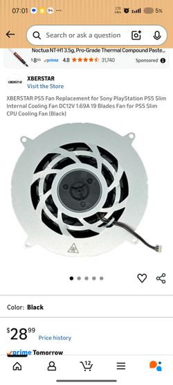 XBERSTAR PS5 Fan Replacement for Sony PlayStation PS5 Slim Internal Cooling Fan DC12V 1.69A 19 Blades Fan for PS5 Slim CPU Cooling Fan (Black)$15Rocklin, CA