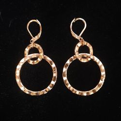 Rose Gold Tone Hammered Dangle Hoop Earrings Pierced Leverback Garold C Miller$15San Diego, CA