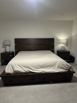 Living spaces Cali King Bed Frame W/night Stands & FREE MATTRESS$600Quartz Hill, CA