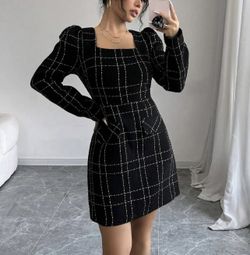 Black Tweed Plaid Dress$15Everett, WA