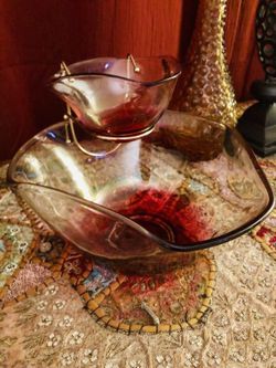 Vintage Indian Glass 1960s chip and dip serving bowl. Ruby Orange red! Retro hippie$35Chicago, IL