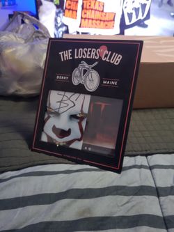 IT Movie Memorabilia Losers Club Photo Stand With Picture Pennywise Singned By Bill's Sarsgaard At A Local Comic Con In 2022. Really Kool Wall Decor $35Miami, FL