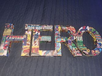 *Marvel Superhero Retro Comics Wooden Letters 'HERO' with Hooks Wall Print Art Home Decor Measures 18" x 6"$19Miami, FL