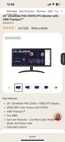 LG 26” Ultrawide Monitor$100Seattle, WA