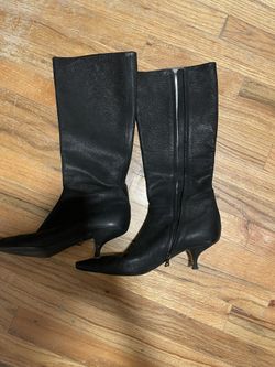 Authentic Prada Vintage Boots - Size 39 - Black Flora Knee High Pointed Toe Kitten Heel$300New York, NY