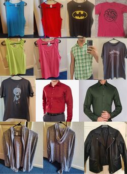 Men's Colorful Dress Plaid Robot Jack Daniels Shirts Tanktops Cardigans Faux Leather Jacket size Med$7Stafford, TX