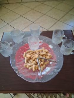 Glass Serving Tray With 6 Glass Mugs$15Perris, CA