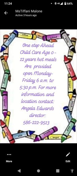 One Step Ahead In Home Child Care For More Information Direct Caller Is((contact info removed)) Licensed $0Detroit, MI