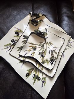 Square Hand Painted Olive Design Plates Set of 3 $65Thornton, CO