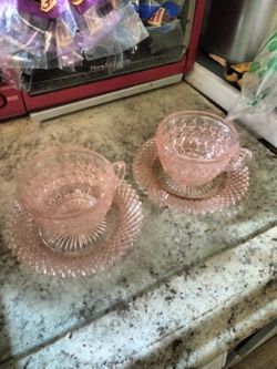2 Tea Cup/Saucer Pink Depression Glass Sets - Jeanette/Anchor Hocking$20Hazelwood, PA