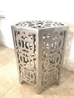 Arthur Court Style Polished Aluminum Chinese Coin Hexagonal Table, 1970's$375Boca Raton, FL