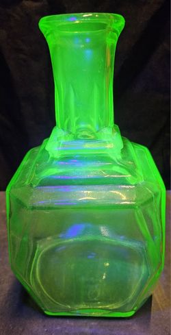 Vintage Anchor Hocking green depression uranium vaseline glass decanter bottle.$125San Antonio, TX