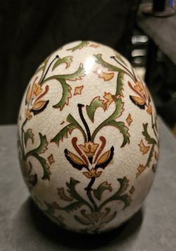 Vintage Large 4" Chinese Easter Egg Hand-Painted Floral Stamped Signed