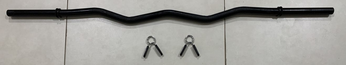 π₯ποΈββοΈπ₯ New 47β Curl Bar with easy on spring clips clamps for 1β hole standard weight plates$60Miami, FL