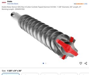 Diablo Rebar Demon SDS-Max 4-Cutter Carbide-Tipped Hammer Drill Bit - 1-3/8" Diameter, 36" Length, 31" Working Length - DMAMX1350$119Las Vegas, NV
