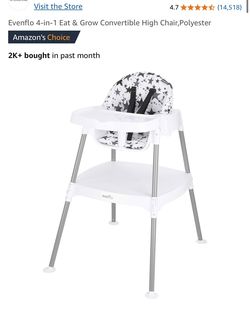Evenflo 4-in-1 Eat & Grow Convertible High Chair,Polyester$30Seattle, WA
