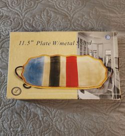 Hand Painted Ceramic Serving Plate With Metal Stand (NEW)$10Delray Beach, FL