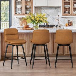 26 Inch Swivel Bar Stools Set of 3, Counter Height Barstools, Double Upholstered, Faux Leather, Metal Legs, Kitchen Island, Whiskey Brown$149La Habra Heights, CA